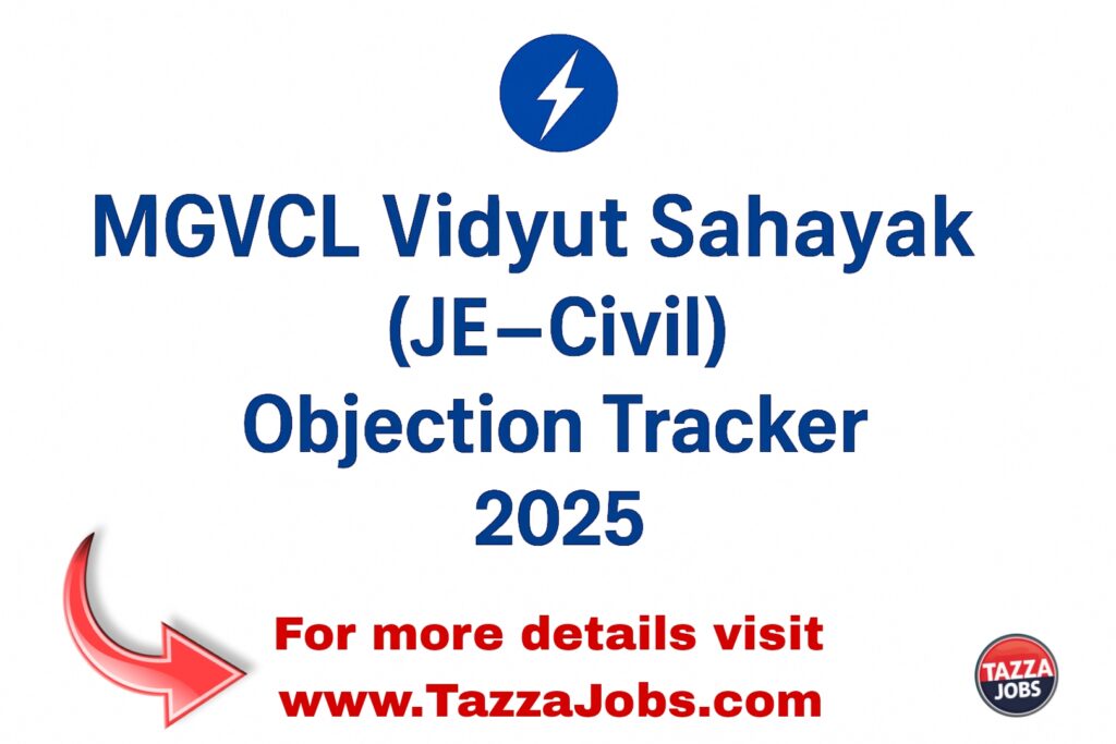 Madhya Gujarat Vij Company Limited (MGVCL) has officially activated the Objection Tracker for the Vidyut Sahayak (Junior Engineer–Civil) 2nd Tier